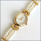 titan dial adorned with elegant diamond pearl bracelet.